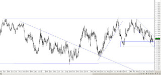 I think that AUD / CAD now is in the middle of a (major long term sideways / downward wave) & it's going to find a resistance level to form a peak close to the current price, but right now no entry at current movement, price will go up & down (osculant price) until it reach the desired resistance, whether it touch the downtrend line, reach the overbought area or touch a horizontal resistance so be patient.
